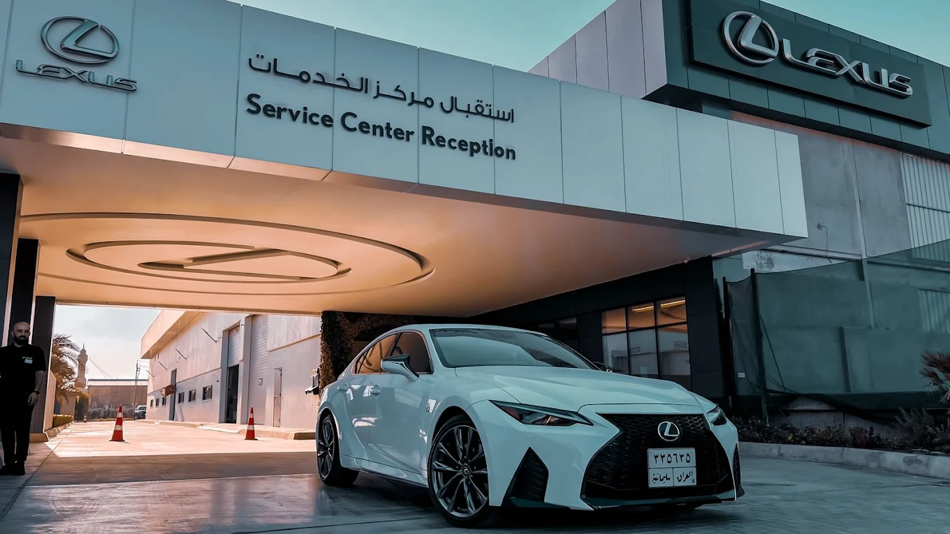 A luxury automotive showroom showcasing Lexus vehicles with premium customer experience.